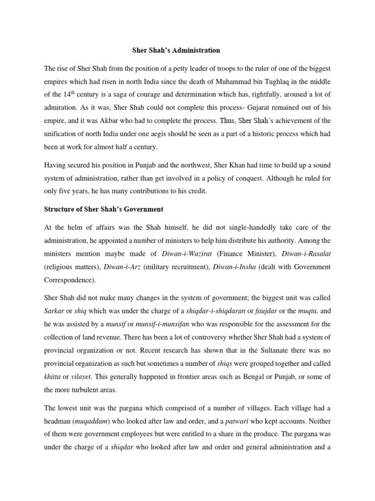 Sher Shah's Administration (Notes) | PDF