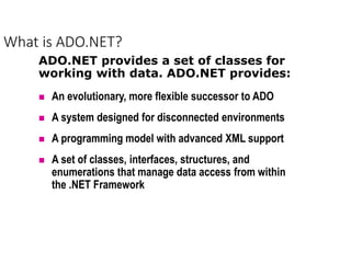 Presentation on the ADO.NET framework in C# | PDF | Databases ...