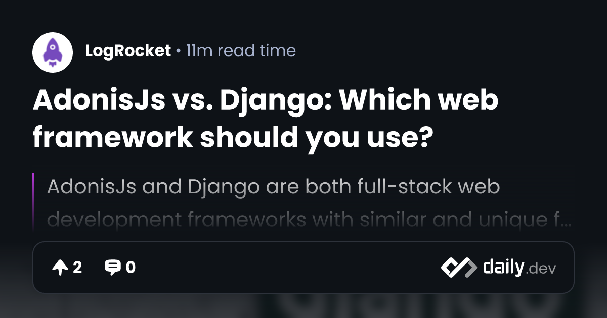 AdonisJs vs. Django: Which web framework should you use? | daily.dev