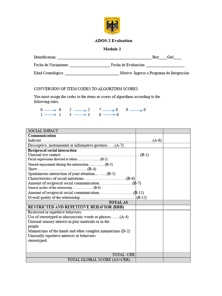 ADOS-2 (autism Diagnostic Observation Schedule -2) Autoscoring Template ...