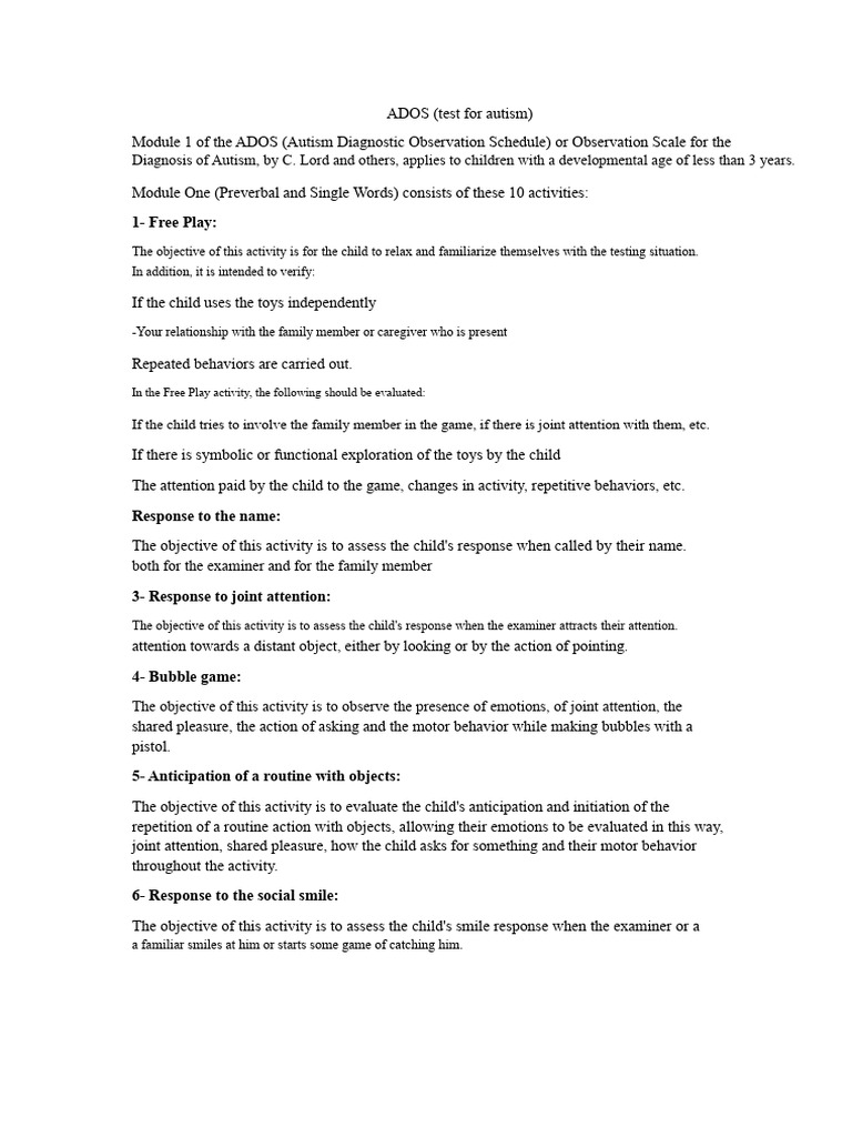 Understanding the ADOS Diagnostic Test for Autism Spectrum | Course Hero