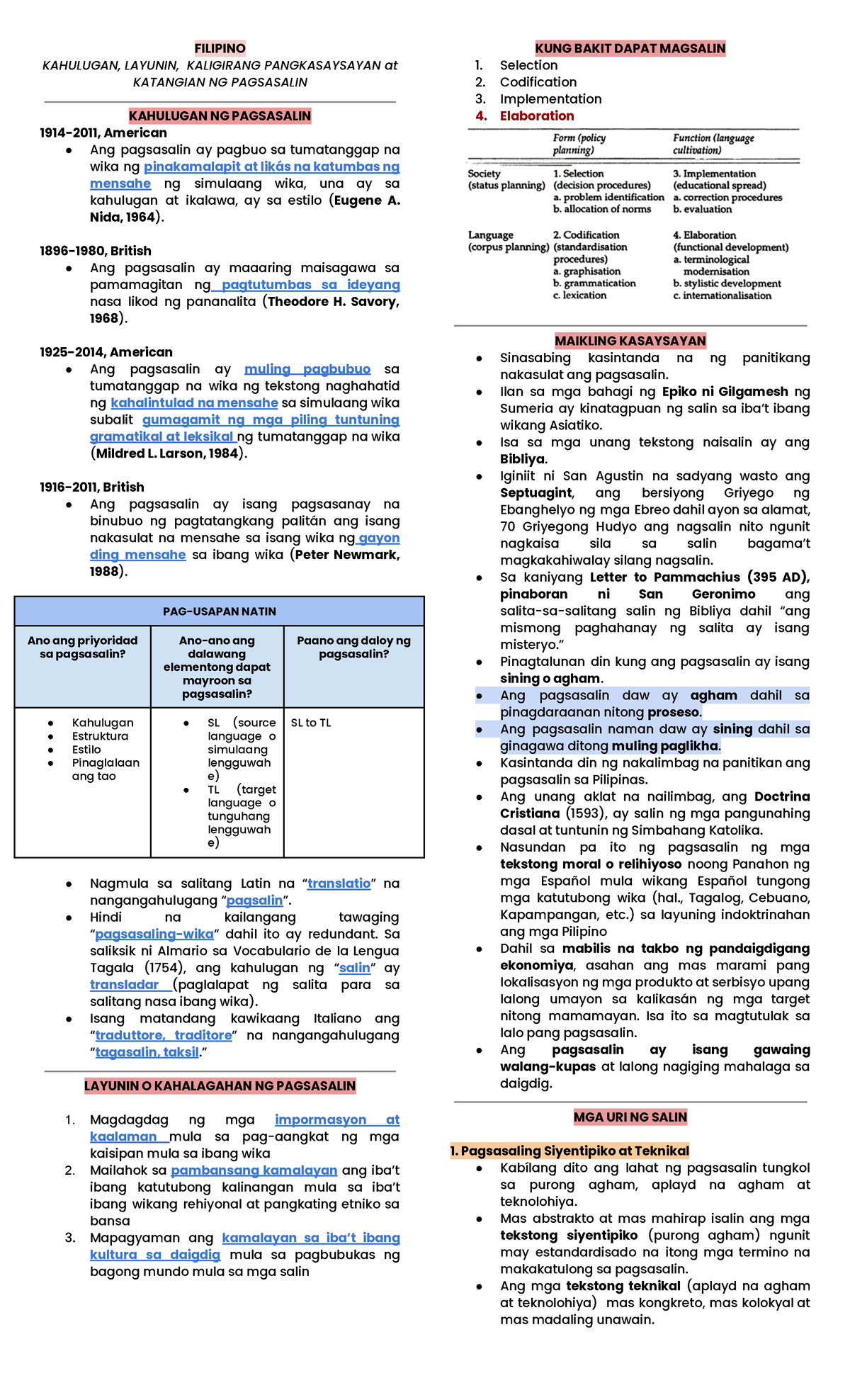Introduksiyon sa Pagsasalin: Reviewer para sa Klaseng FIL101 - Studocu