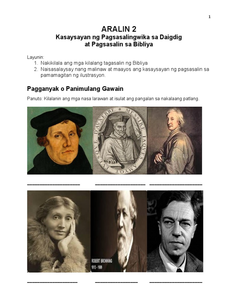 SOLUTION: Pagsasalin sa Buong Daigdig at sa Pilipinas - Studypool