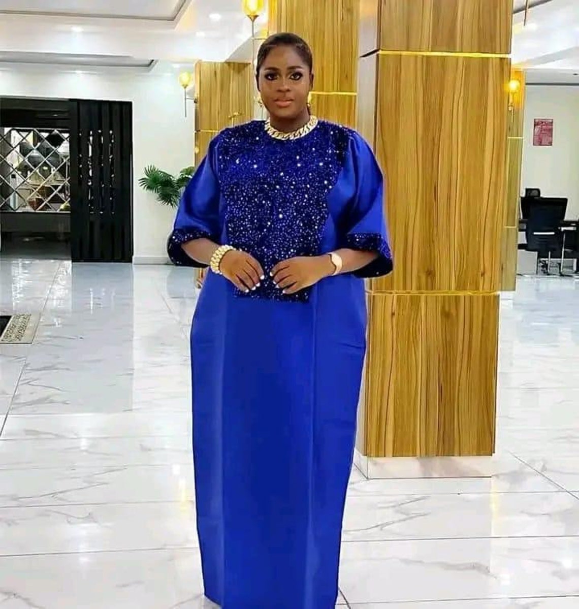 Two Tone Adire Bubu Dress Mix With Aso Oke, Adire Cotton, African Bubu ...