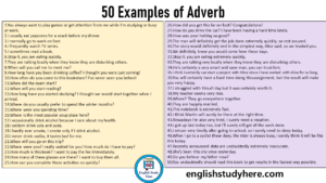 50 Examples of Adverb, Example Sentences with Adverbs - English Study Here