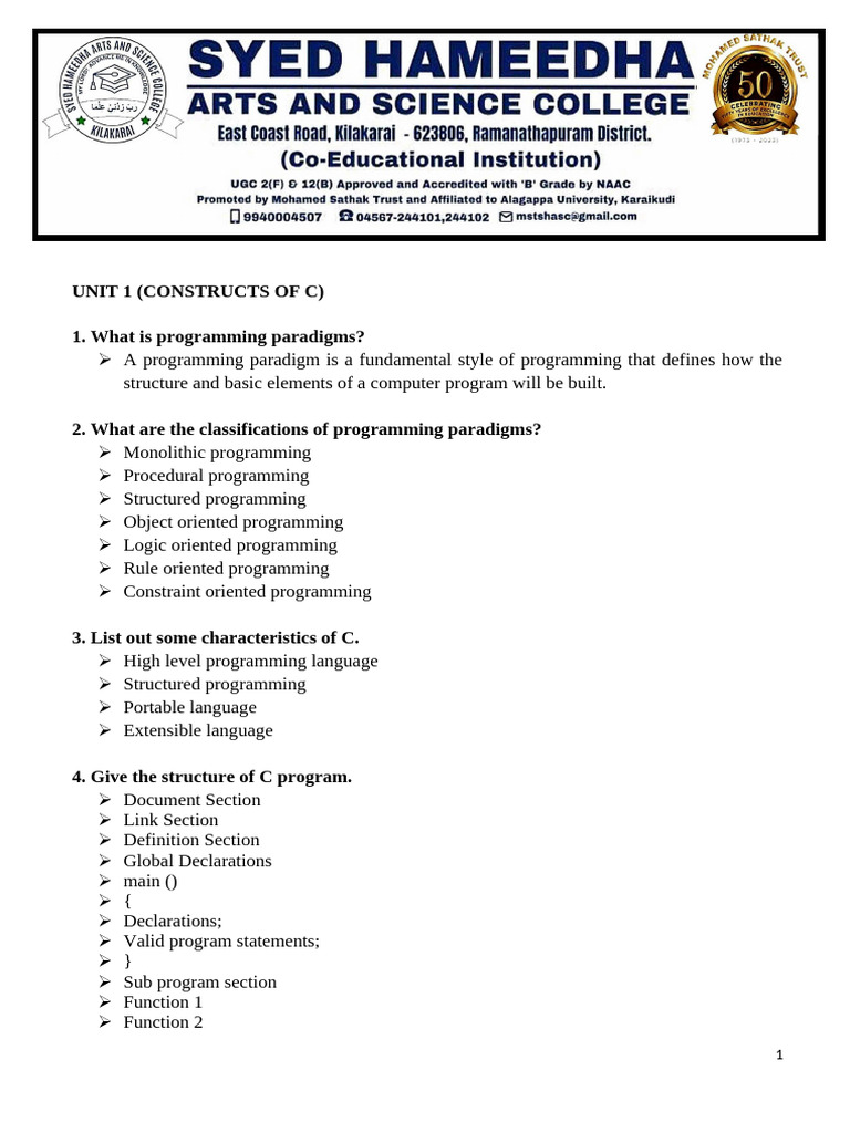 Advanced C 2 Marks | PDF | Pointer (Computer Programming) | Computer ...