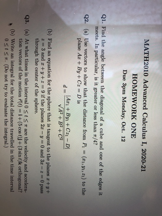 MATH2010 Advanced Calculus I, 2020-21 HOMEWORK ONE | Chegg.com