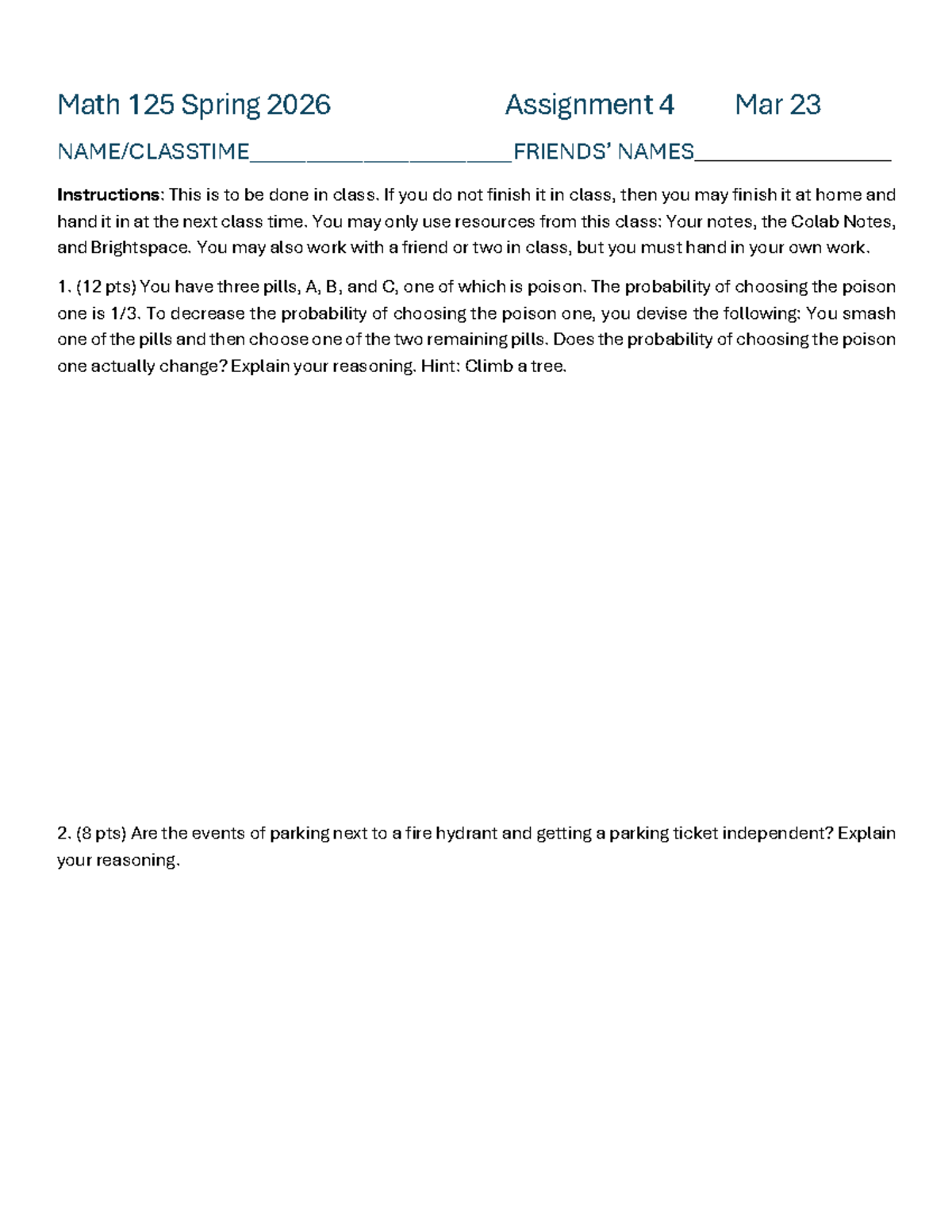 Math 125 Spring 2026 Assignment 4 Instructions and Problems - Studocu
