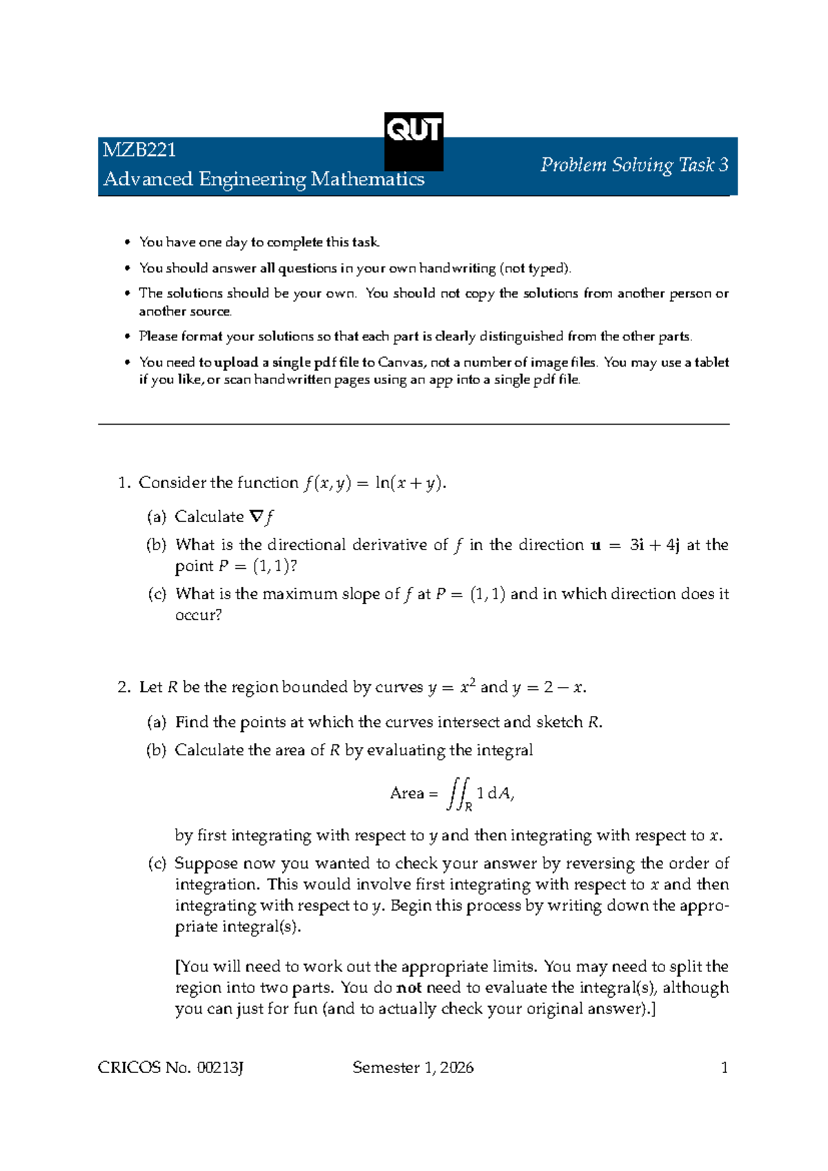 MZB221 Advanced Engineering Math Problem Solving Task 3 Sem 1 2026 ...