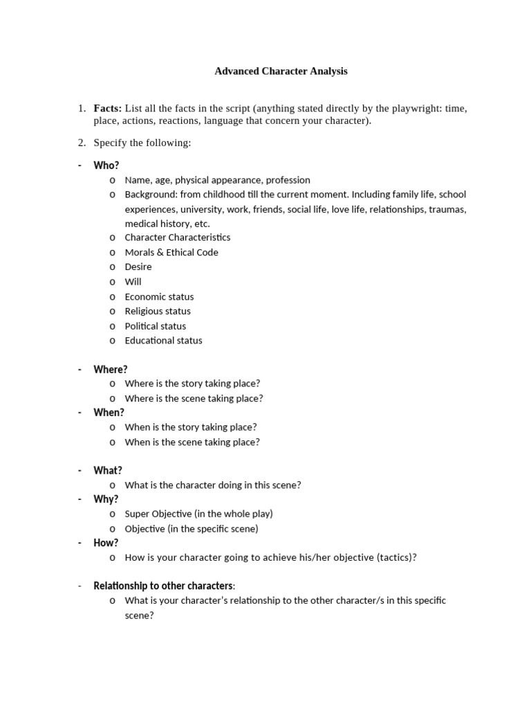 Character Analysis Example Pdf at Jayden Nobbs blog