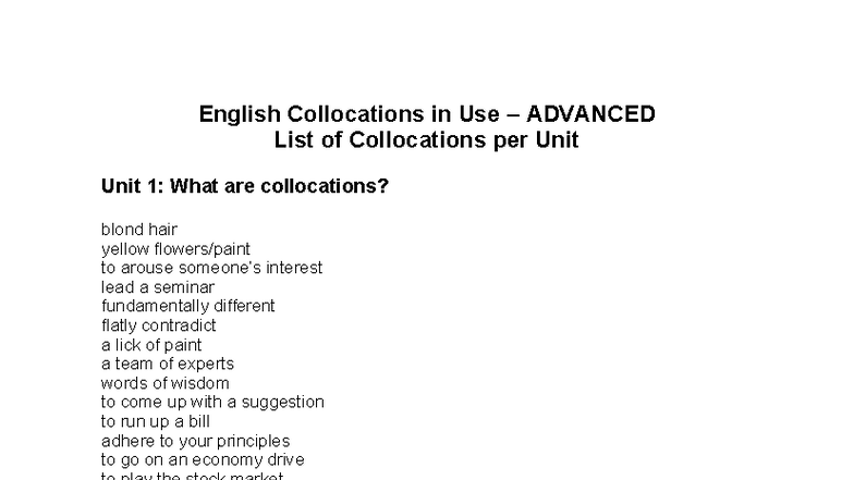 Advanced English Collocations in Use: A Comprehensive Guide - Studocu