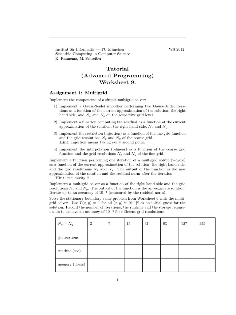 Tutorial (Advanced Programming) Worksheet 9:: Assignment 1: Multigrid ...