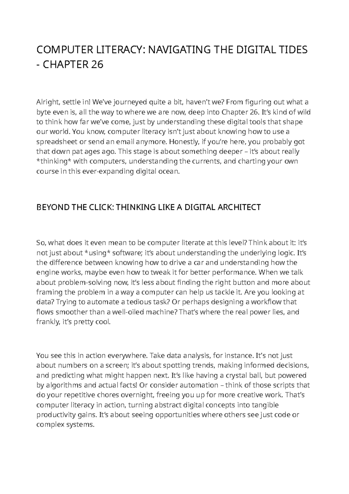 COMPUTER LITERACY: NAVIGATING DIGITAL TIDES CHAPTER 26 NOTES - Studocu