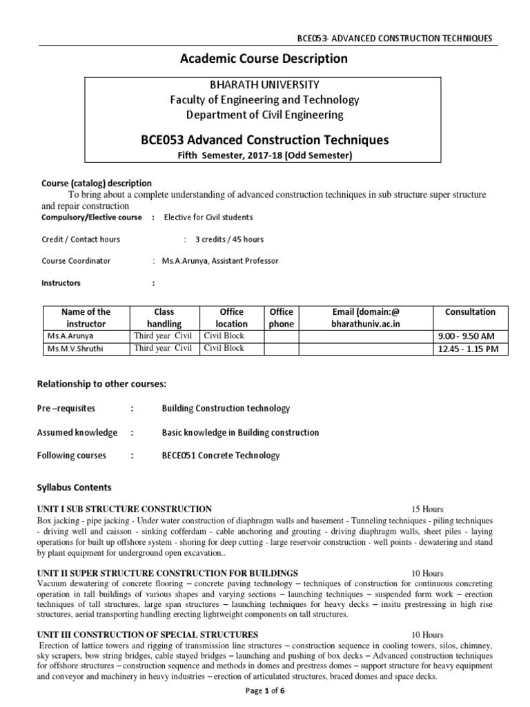 BCE053 - Advance Construction Techniques | PDF | Engineering | Deep ...