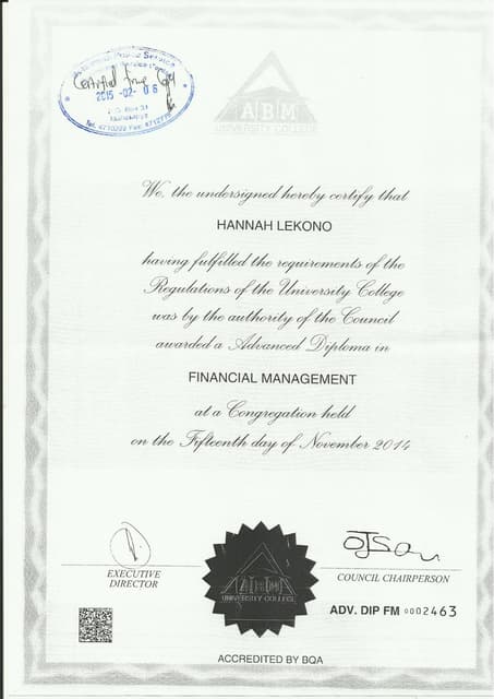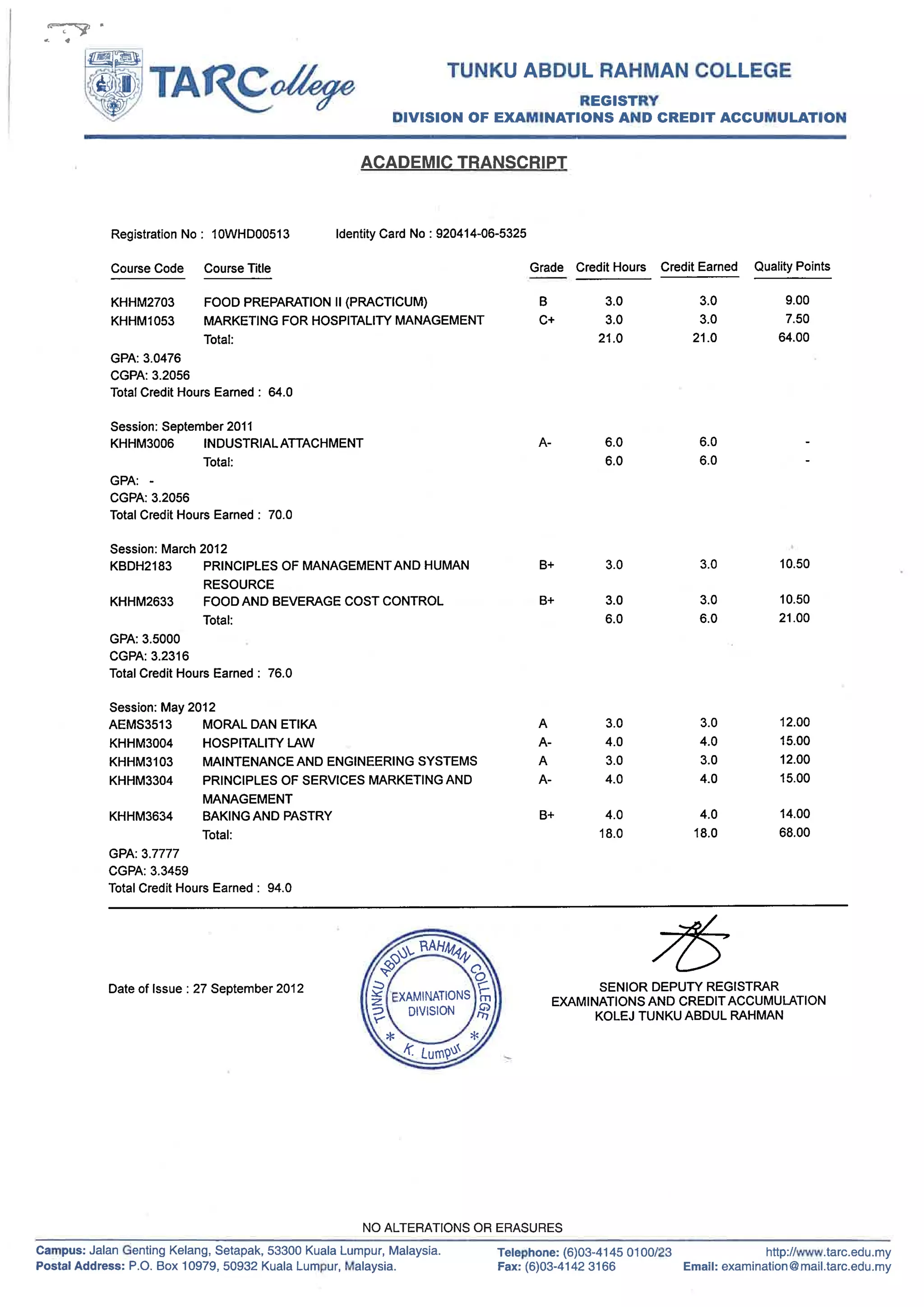 ACADEMIC TRANSCRIPT DIPLOMA IN HUMAN RESOURCES 1 | PDF