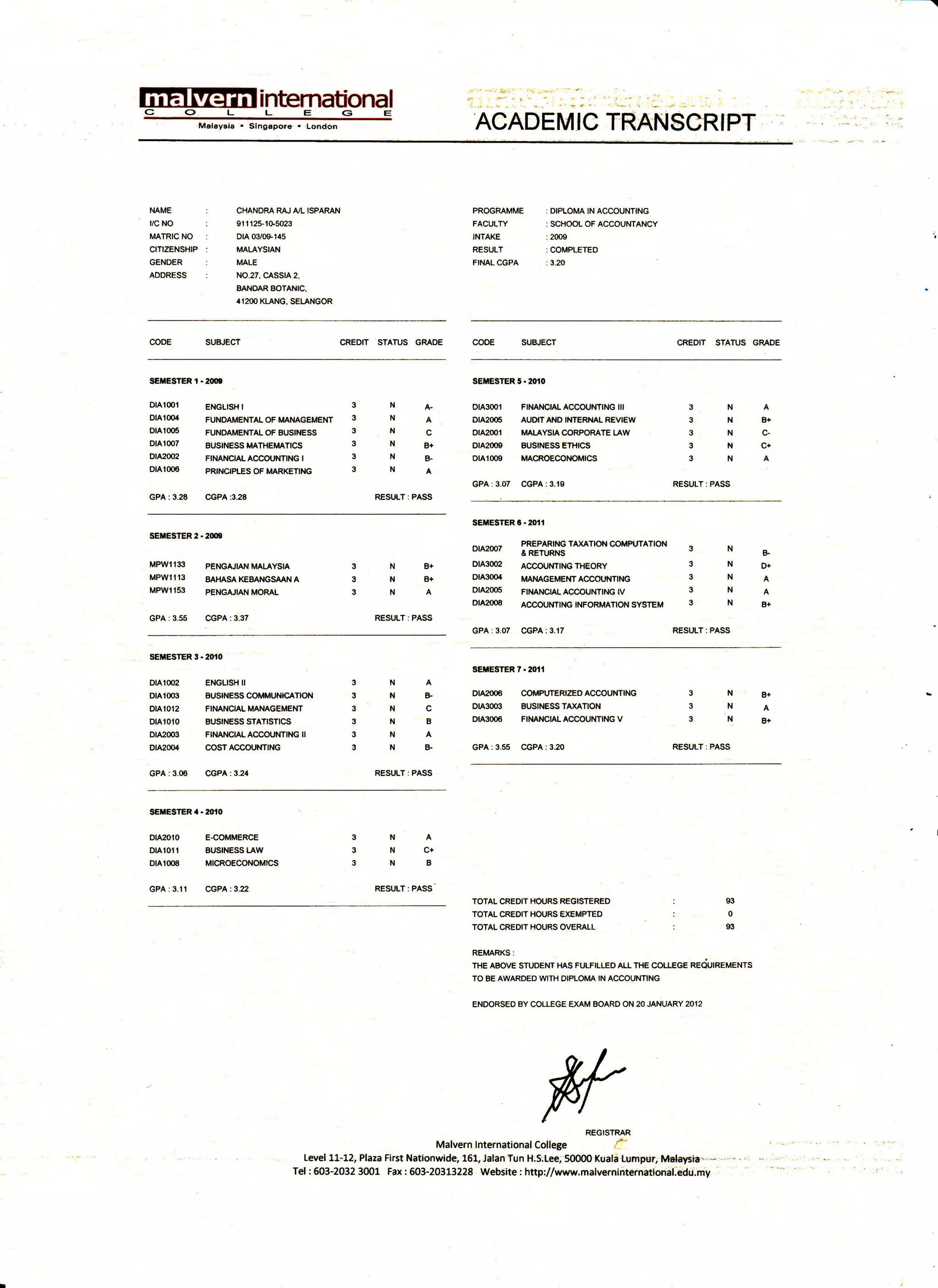 ACADEMIC TRANSCRIPT DIPLOMA IN ACCOUNTING - ADVANCED CONTROLS AND ...