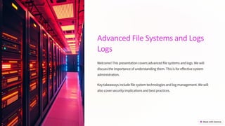 Advanced File Systems and Logs SYSTEM AND NETWORK ADMINISTRATION | PPT