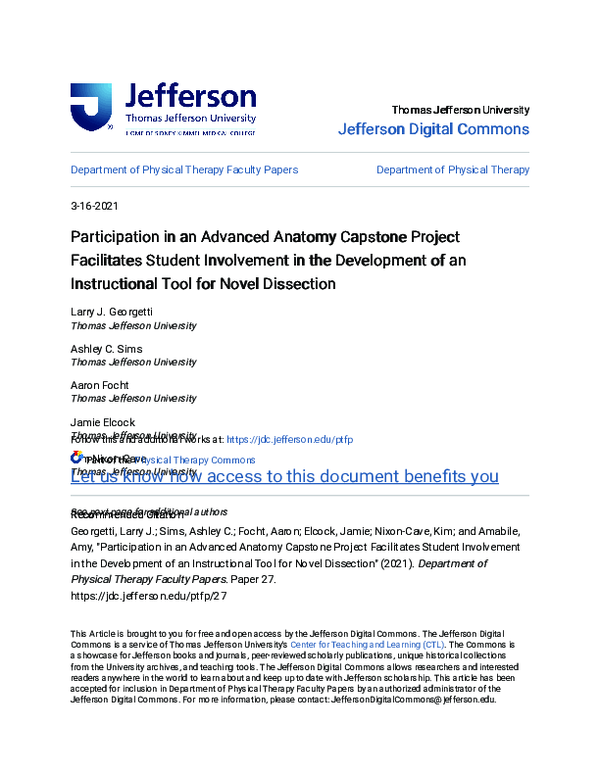 (PDF) Participation in an Advanced Anatomy Capstone Project Facilitates ...