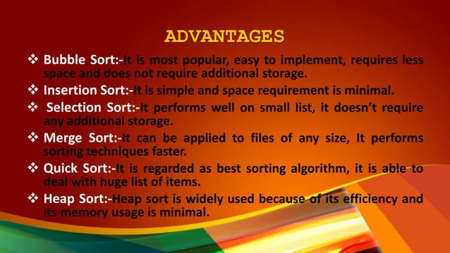 Applications, Advantages and Disadvantages of Sorting Algorithm ...