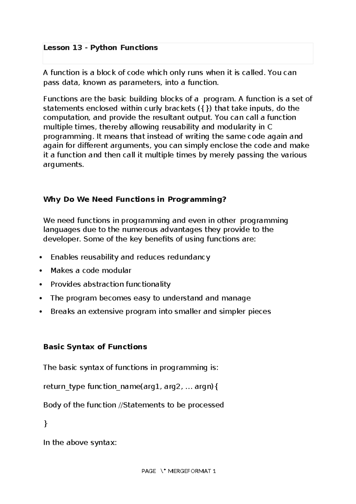 Lesson 13: Understanding Python Functions and Their Usage - Studocu