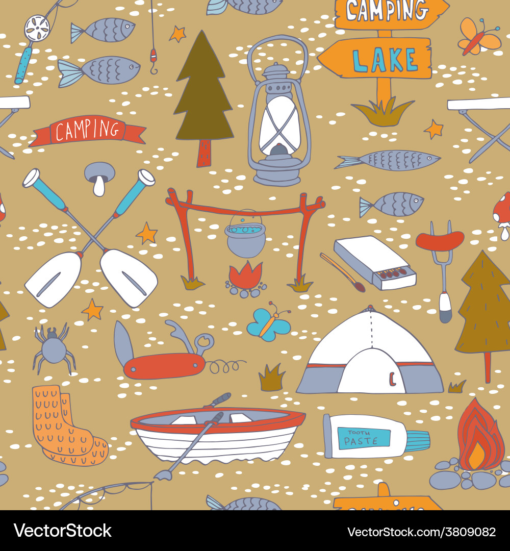 Camping Adventure Seamless Pattern vector Stock Vector Image & Art - Alamy
