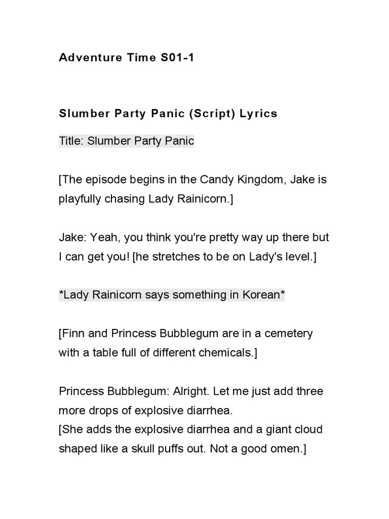 Adventure Time – Slumber Party Panic (Script) | Genius