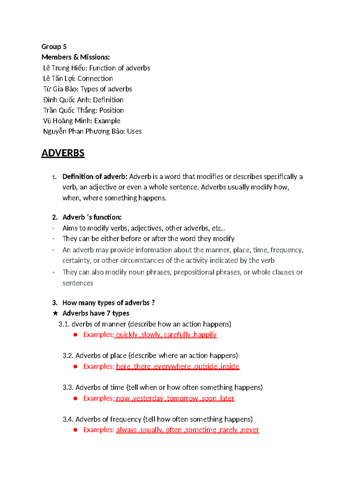 Adverbs Overview: Types, Functions, and Examples (ENG 101) - Studocu