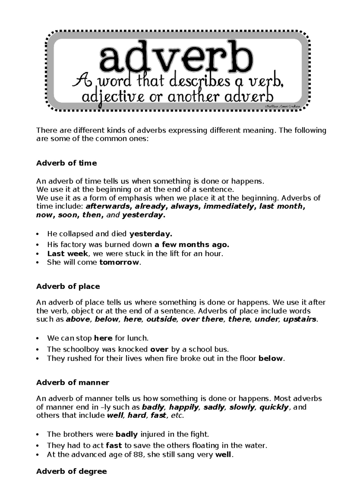Adverbs What Is An Adverb Useful Grammar Rules List