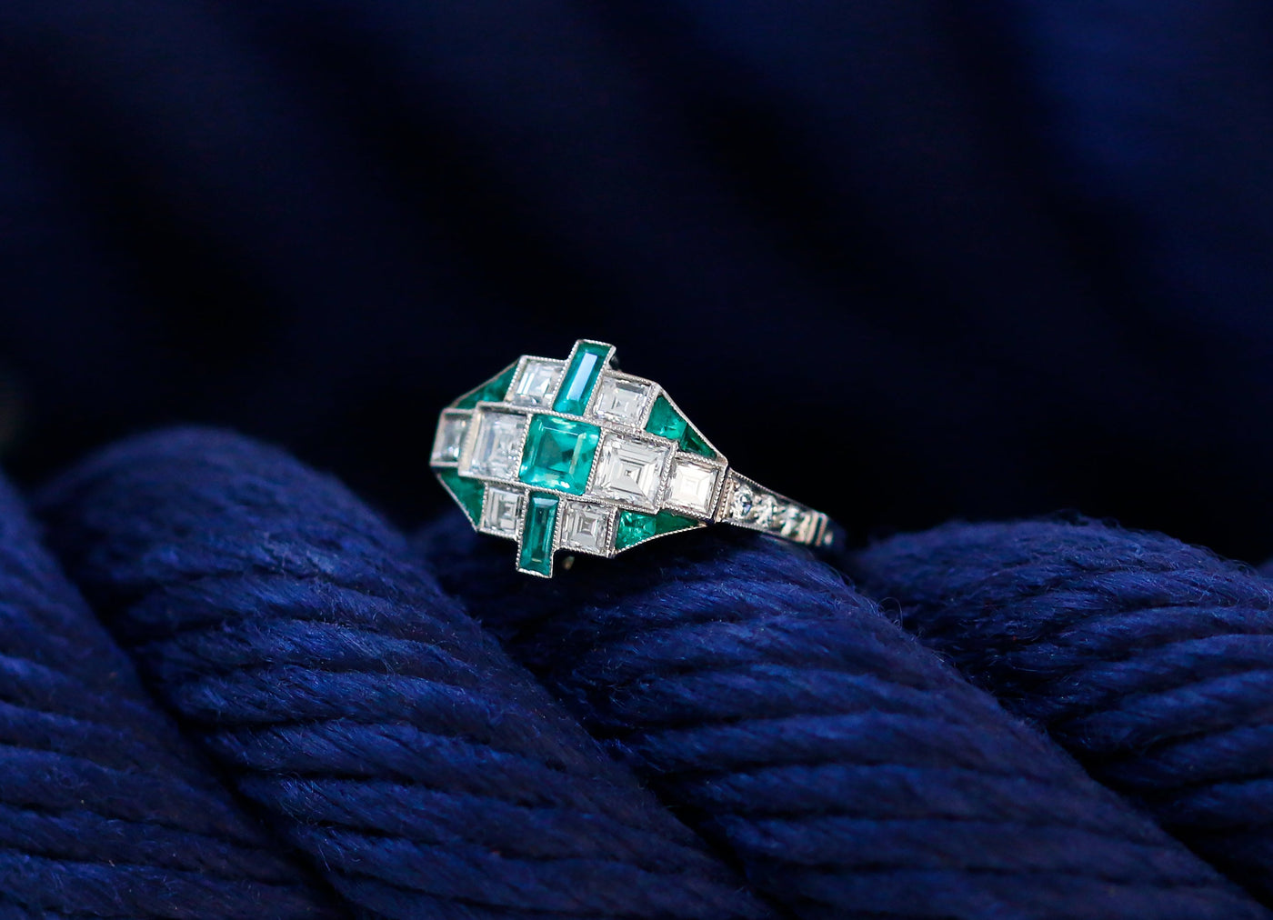 Latest Advert - Platinum Diamond and Emerald Dress Ring – Mortimers ...