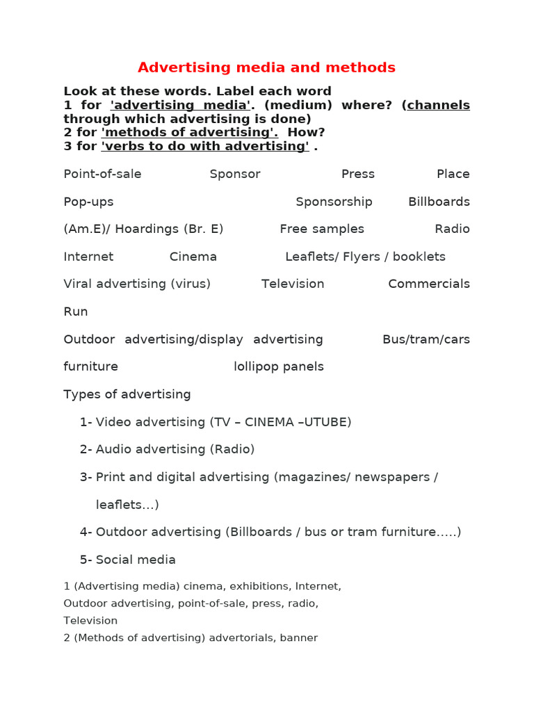 Advertising Methods and Pros/Cons Guide | PDF