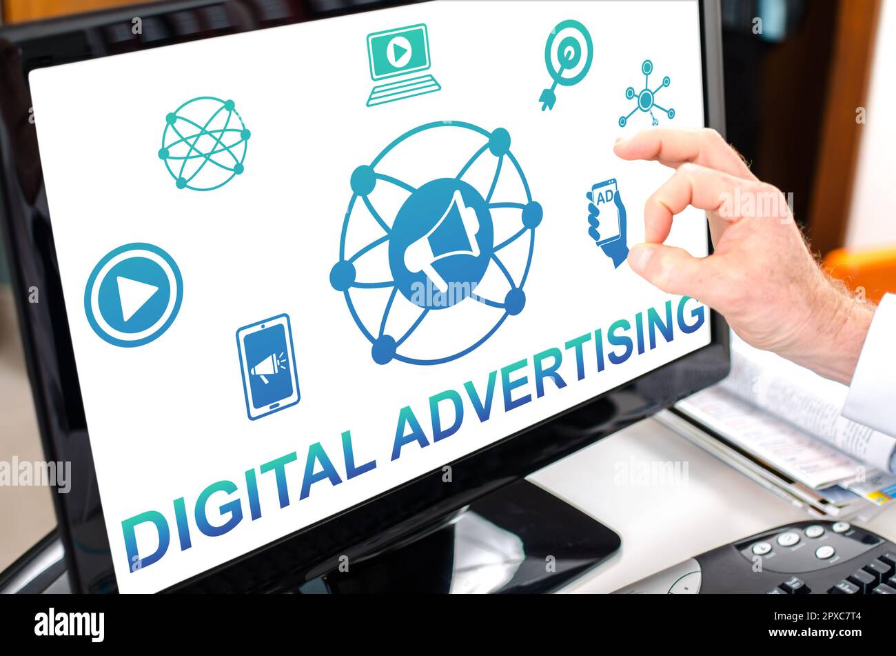 Digital advertising concept shown on a computer screen Stock Photo - Alamy