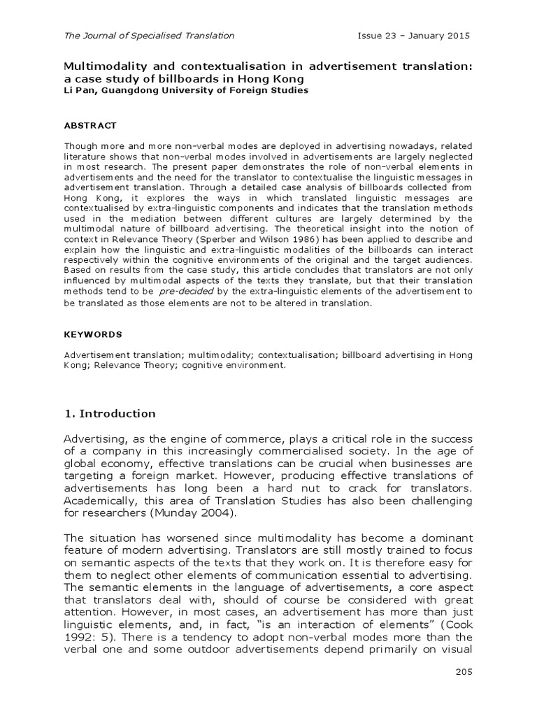 Multimodality and Contextualisation in Advertisement Translation | PDF ...