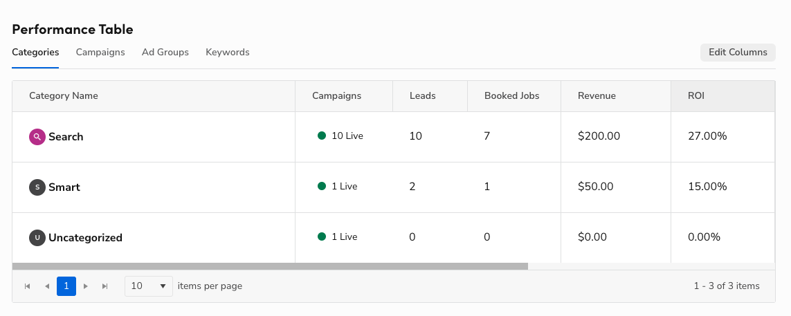 Ads Performance Table