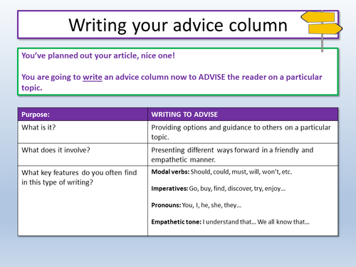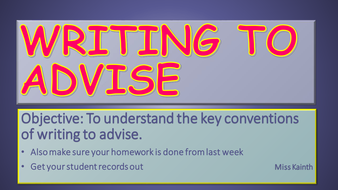 WRITING TO ADVISE KS3/GCSE lesson | Teaching Resources