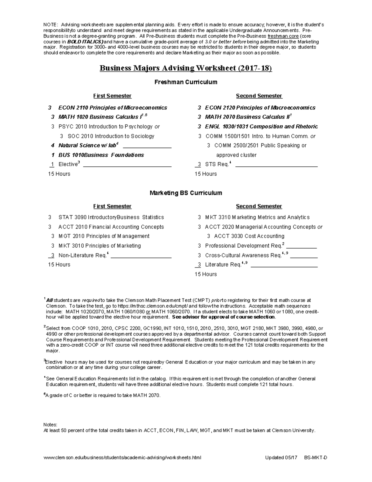1718 marketing - Examples - NOTE: Advising worksheets are supplemental ...