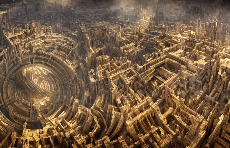 Lexica - 8 k uhd an enormous labyrinth, beautiful architecture, statues ...