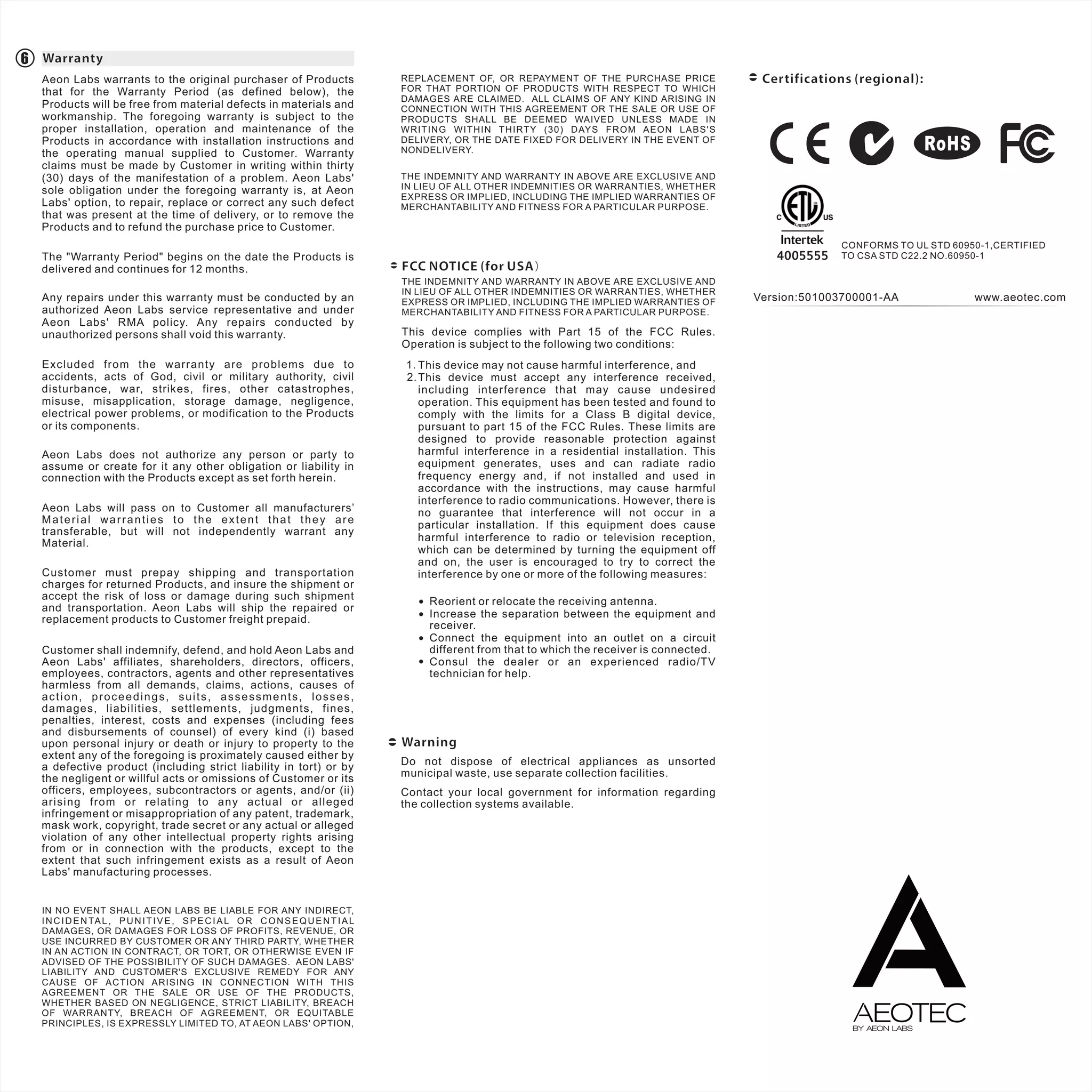 Aeon Labs manuals
