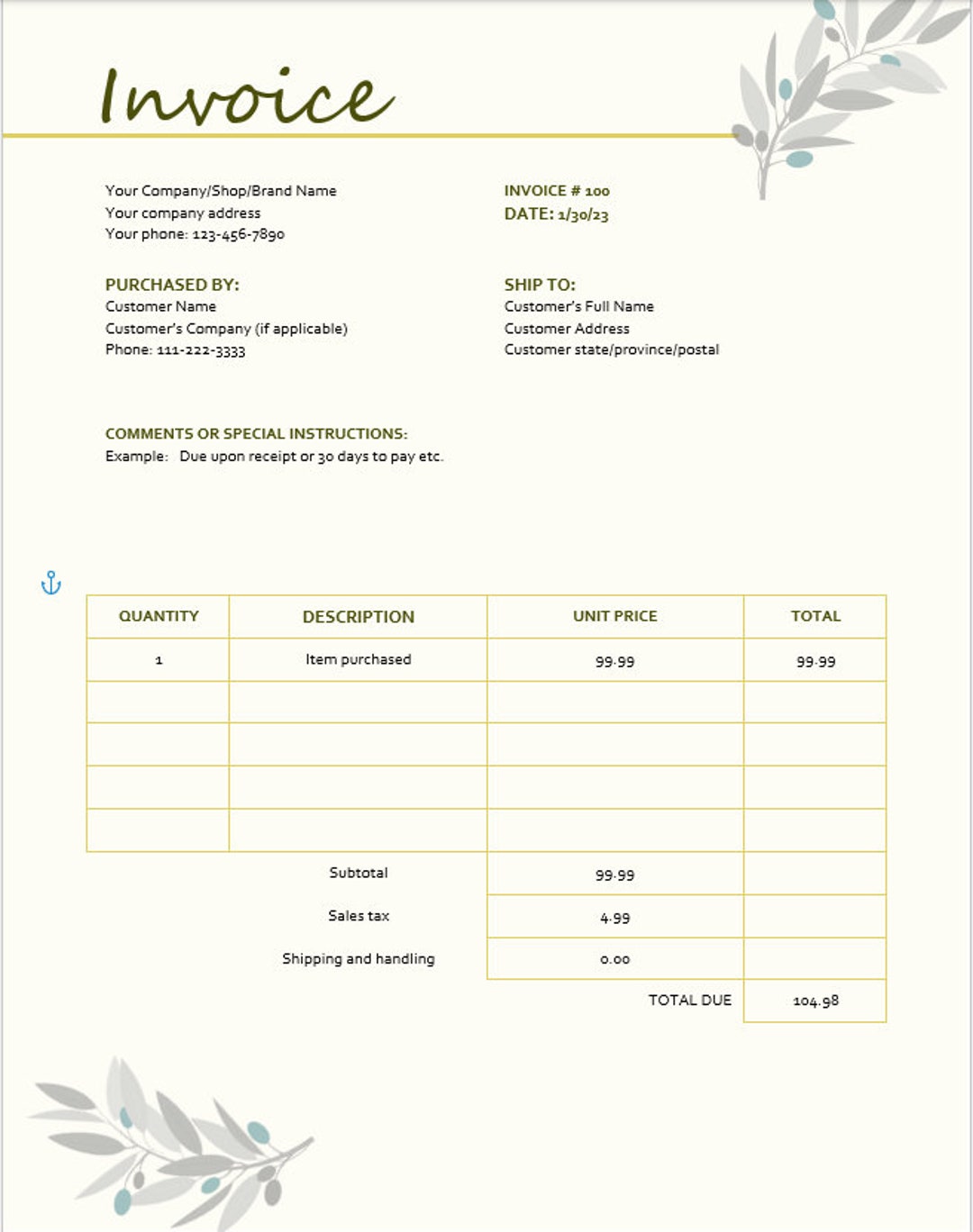 Invoice Template aesthetic - Etsy