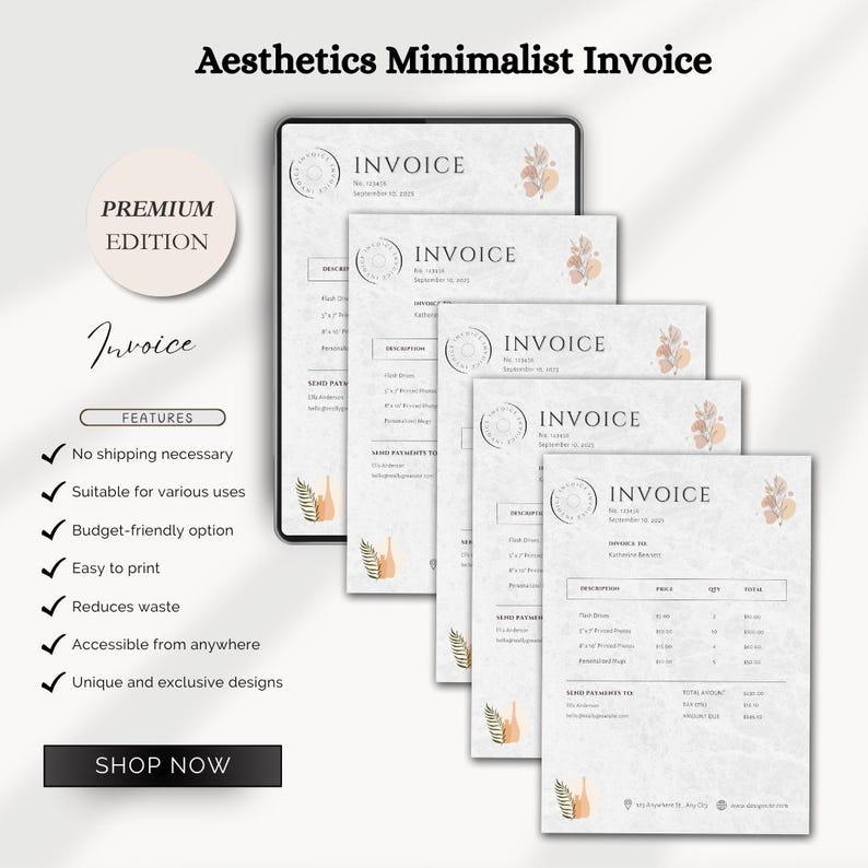 Minimalist Invoice Template | Cute & Aesthetic Invoice | Digital ...