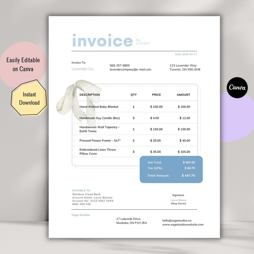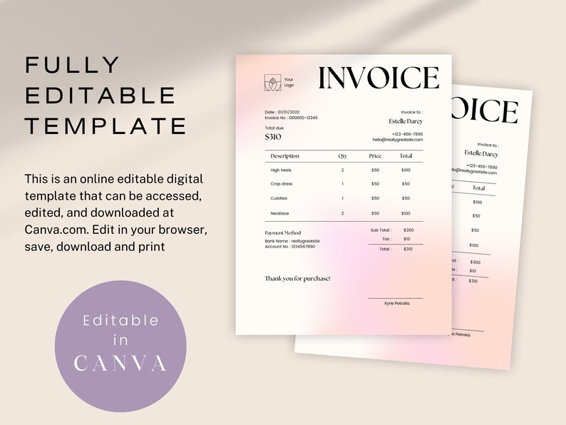 Digital Aesthetic Invoice Template – Editable in Canva | Printable PDF ...