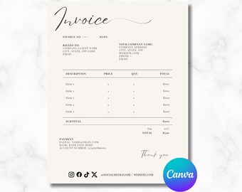 Invoice Template | Customise in Canva | Minimalist Aesthetic | Social ...