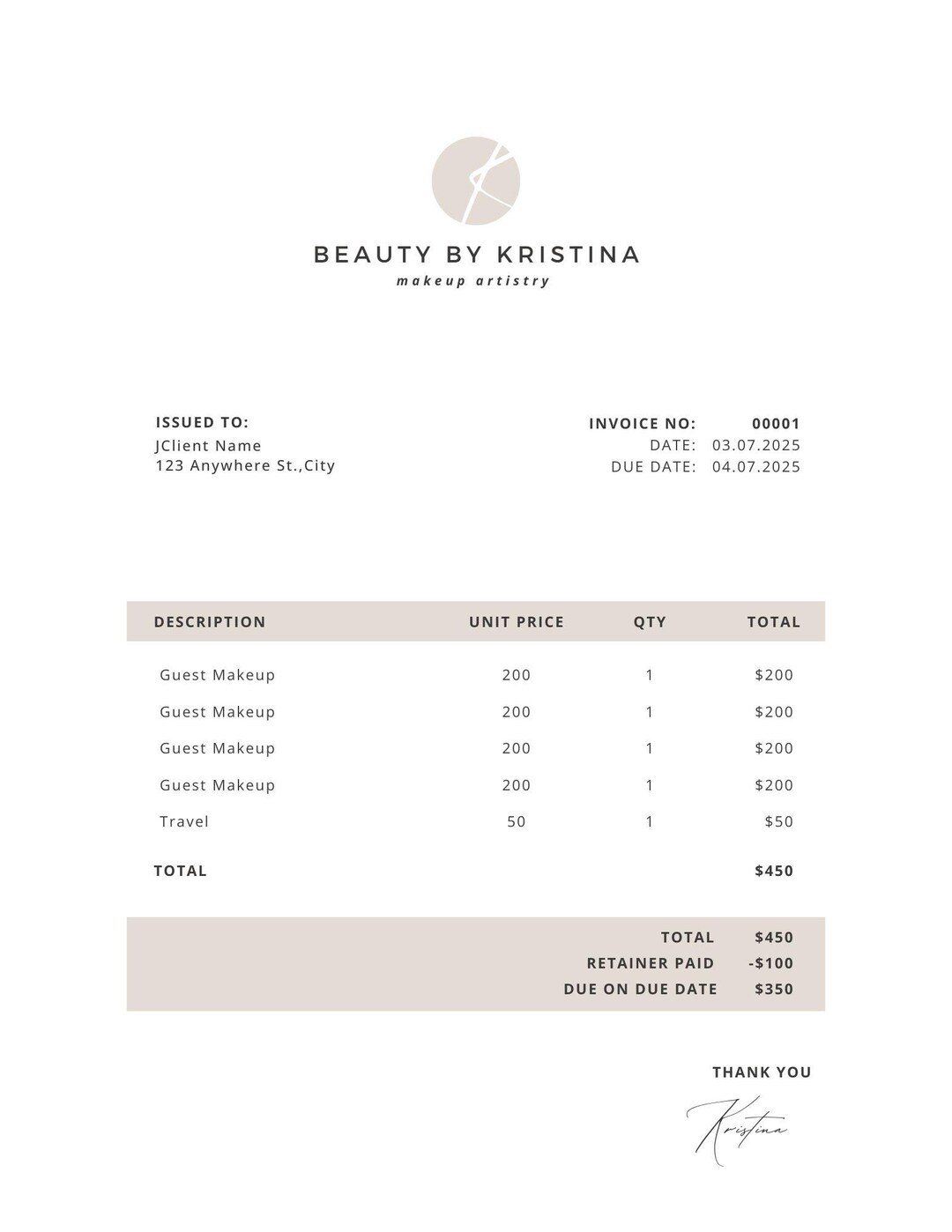 Aesthetic Branding Invoice
