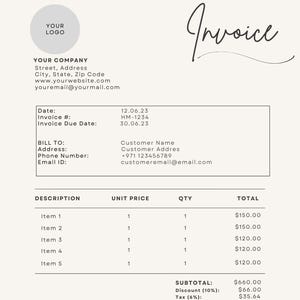 Neutral Aesthetic Invoice Template Editable Invoice Printable Invoice ...