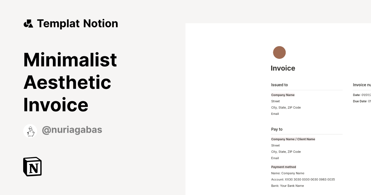 Minimalist Aesthetic Invoice Templat oleh Núria Gabàs | Notion Marketplace