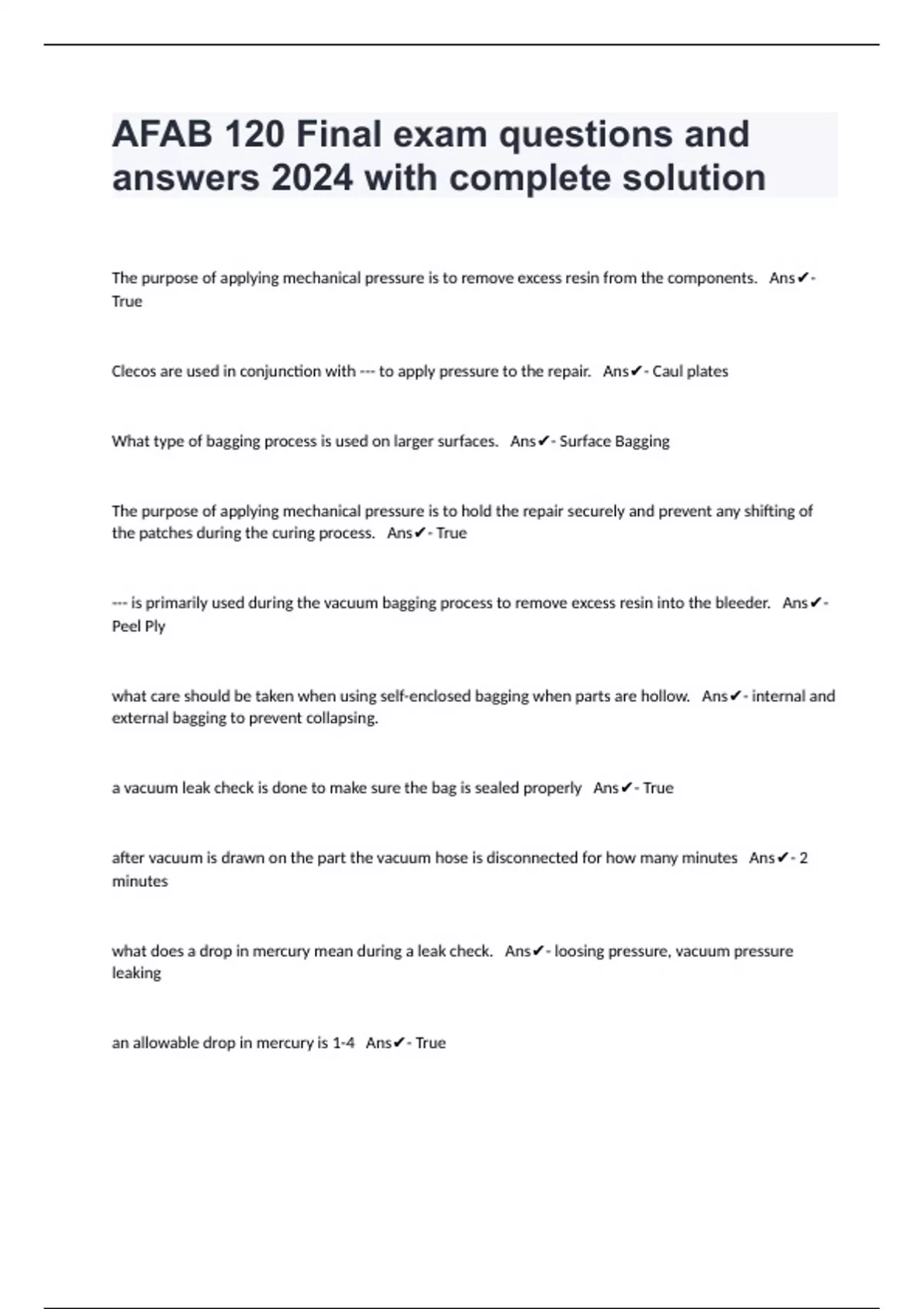 AFAB 120 Final exam questions and answers 2024 with complete solution ...