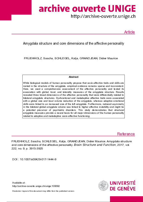 (PDF) Amygdala structure and core dimensions of the affective personality