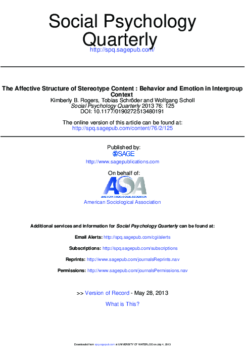 (PDF) The Affective Structure of Stereotype Content: Behavior and ...