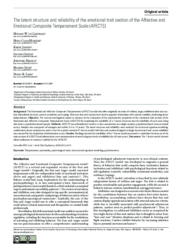 (PDF) The latent structure and reliability of the emotional trait ...