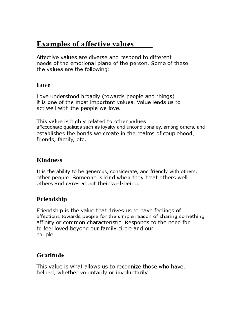 Examples of Affective Values | PDF | Love | Friendship
