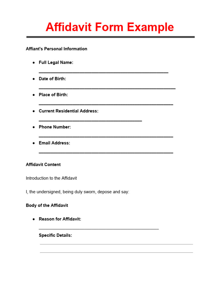 Sample Affidavit Form - Affidavit Template | PDF & Word | FormSwift